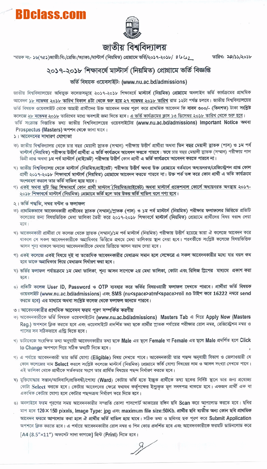 জাতীয় বিশ্ববিদ্যালয় মাস্টার্স (নিয়মিত) ভর্তি ২০১৮ আবেদন শুরু